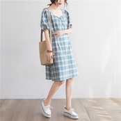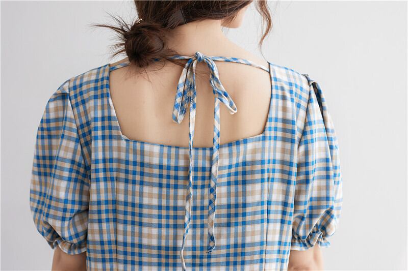 ラージサイズファットmmお腹カバースキームドレス2020サマースクエアカラースリミングホルターレースアップウエスタンチェック柄スカート 大きめサイズ 夏物 スクウェア TB2-8 TB2-886618059193