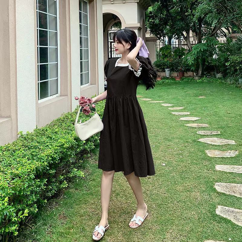 2021年夏スーパーフェアリールーズドレスパフスリーブフレンチレトロロングスカートファットシスタースクエアカラーヘップバーンスカートラージサイズ 大きめサイズ サマー 夏物 スクウェア TB2-10 TB2-1057241664339