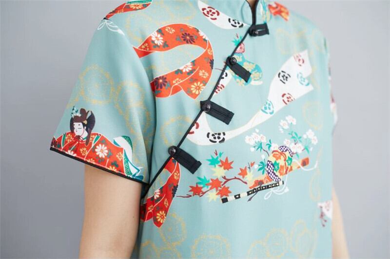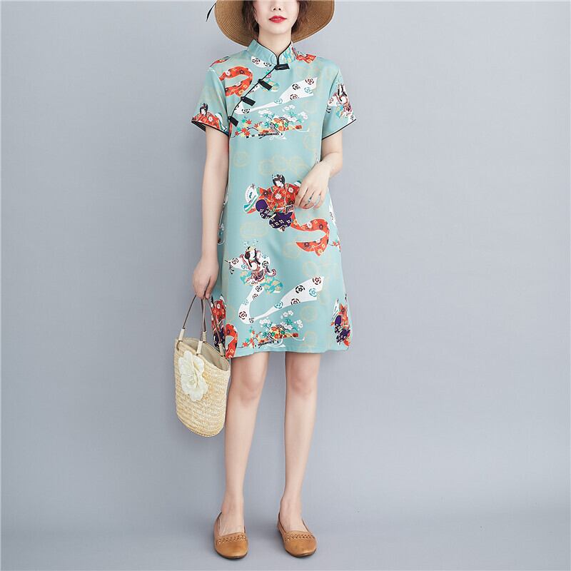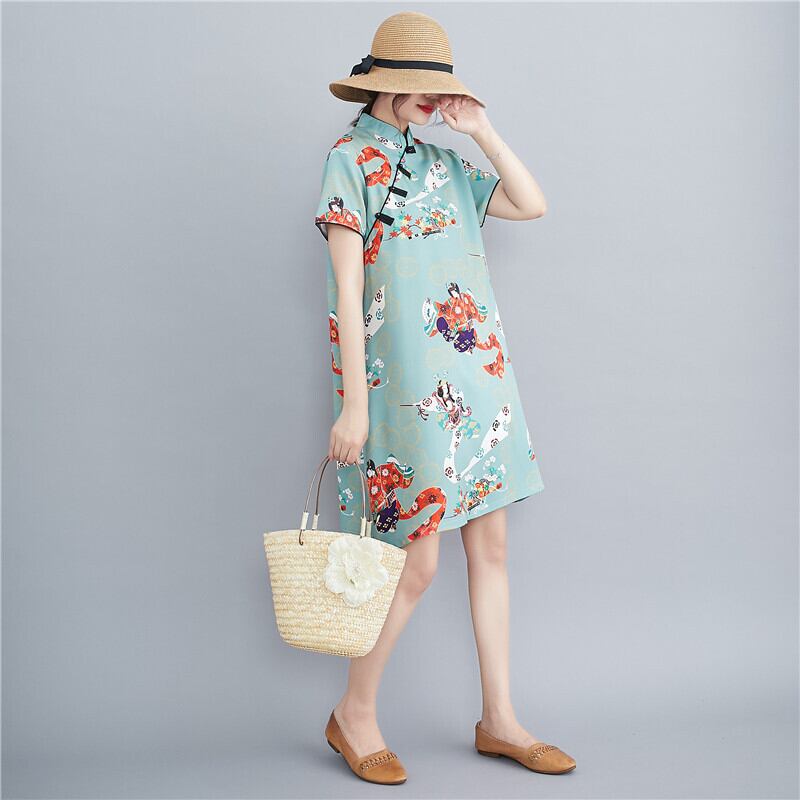 2020年夏の新しい文学傾斜前立てバックルスタンド襟改良チャイナドレス女性ファッション大型スリムスカート 大きめサイズ サマー 夏物 TB2-8 TB2-870635139174