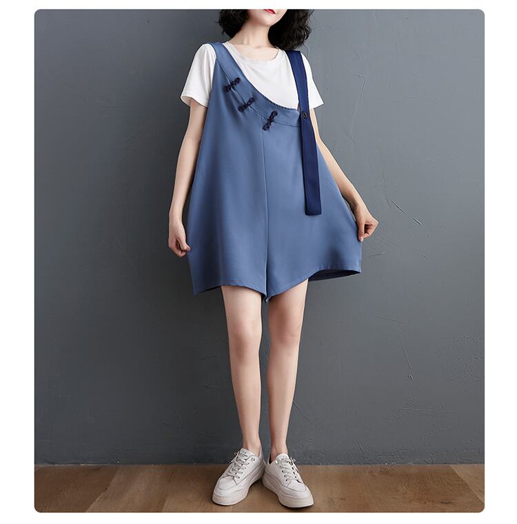 ファットmmプラスサイズの女性の夏のデザインのニッチな薄さの感覚、年齢削減パンバックルワイドレッグサスペンダーショーツ、アウターウェアジャンプスーツ 大きめサイズ サマー 夏物 ブルマー TB2-8 TB2-847129789171