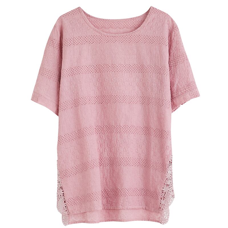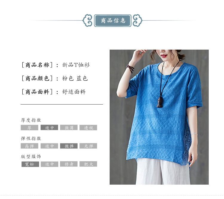プラスサイズ2020年夏の新しいレースステッチファットmmレトロ年齢を減らす純綿の刺繡トップ半袖女性用Tシャツ コットン 刺繍 大きめサイズ サマー 夏物 ピュア TB2-8 TB2-876342954115