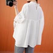 プラスサイズの女性の夏のゆるい文学年齢を減らす真菌ステッチ人形シャツジャケットカジュアルオールマッチリネンシャツ女性 大きめサイズ サマー 夏物 TB2-8 TB2-854152432338