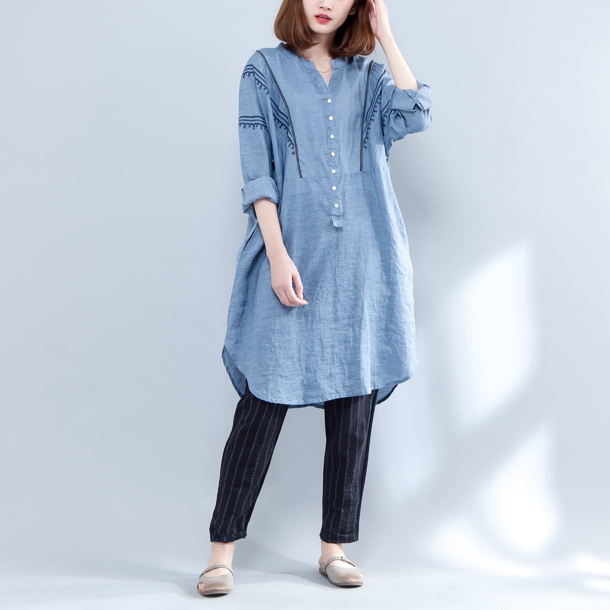 プラスサイズの婦人服2020年春の文学的なVネックリネン刺繡ドレスミドル丈のルーズで用途の広いAラインスカート 刺繍 大きめサイズ スプリング 春物 TB2-8 TB2-81712931894