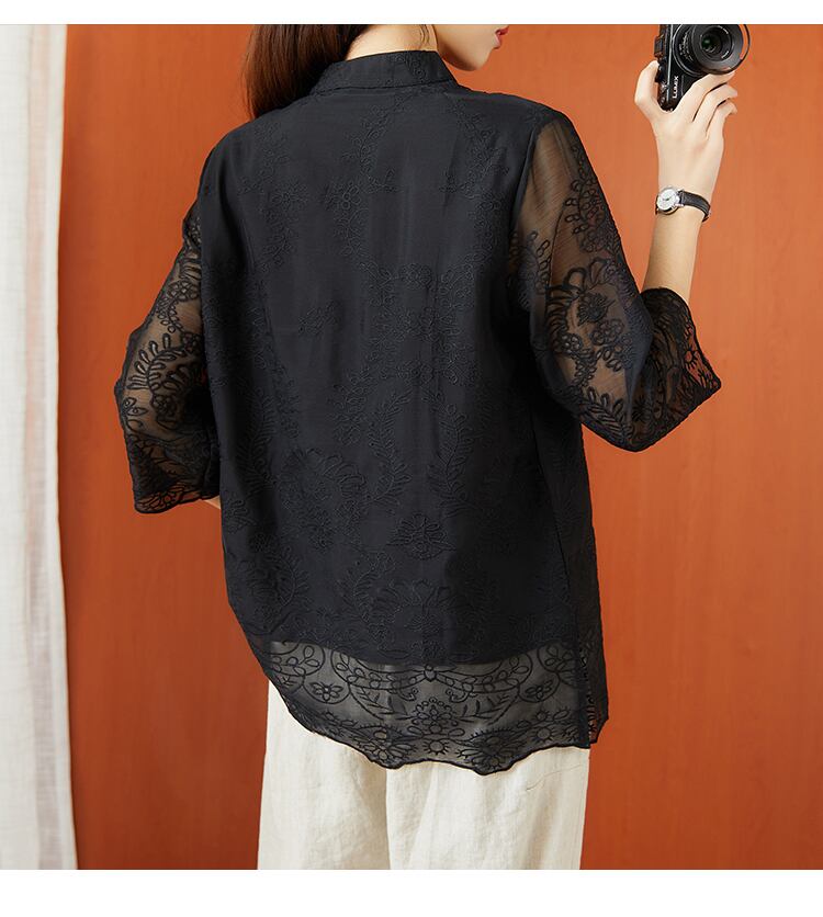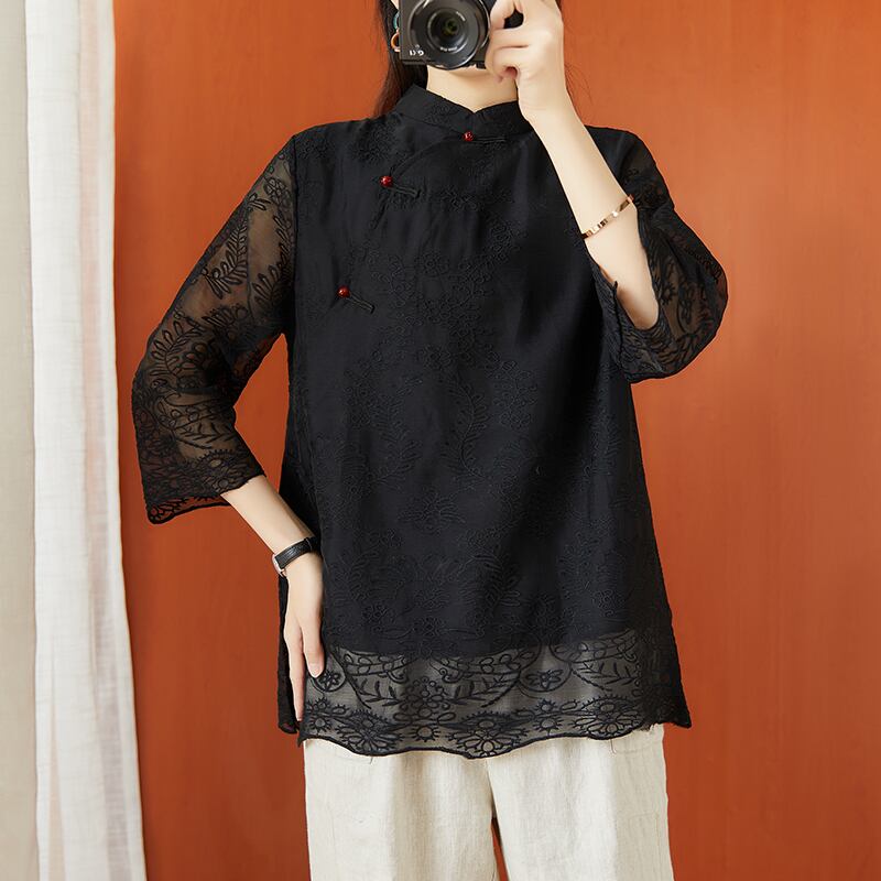 レトロなチャイニーズスタイルの傾斜ボタンシャツ2021年夏のレディースプラスサイズのレディースウエスタンスタイルのボトミングシャツレース刺繍ブラウス レッド 大きめサイズ サマー 夏物 TB2-8 TB2-817291060321