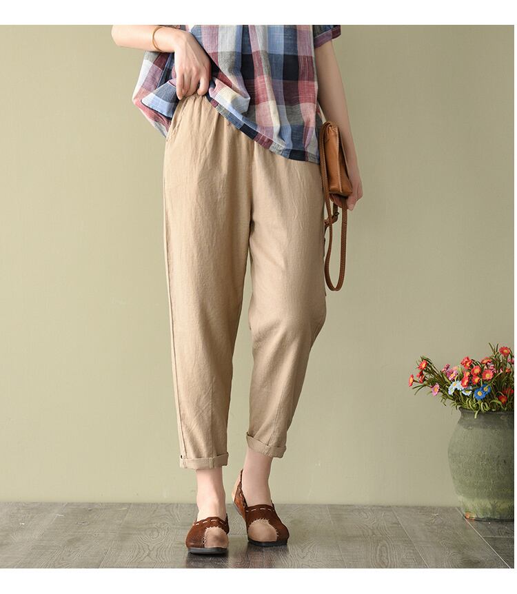 2020年新夏新作レトロリテラリーコットン&リネンレディースパンツ無地薄足パンツワイルドハーレムパンツカジュアルパンツ サマー 夏物 ソリッドカラー TB2-11 TB2-1190792438134