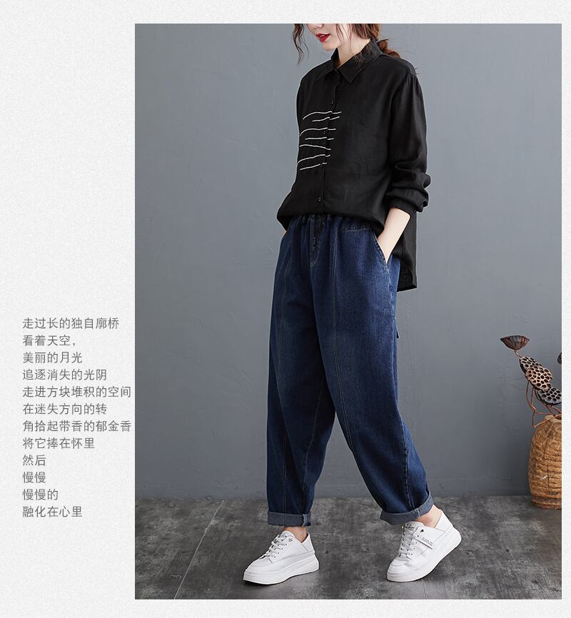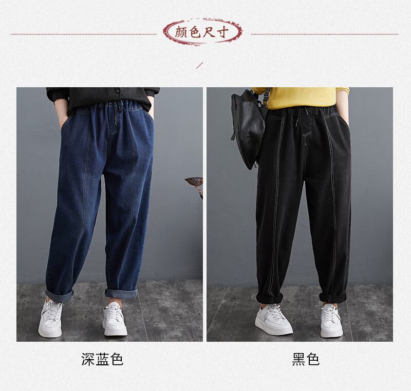 デニムハーレムパンツレディース春ファットmmハイウエストバージョンのラージサイズコントラストカラーオープンライン大根パンツは薄くて用途の広いパンツでした ハイウェスト 大きめサイズ スプリング 春物 TB2-8 TB2-812873526011