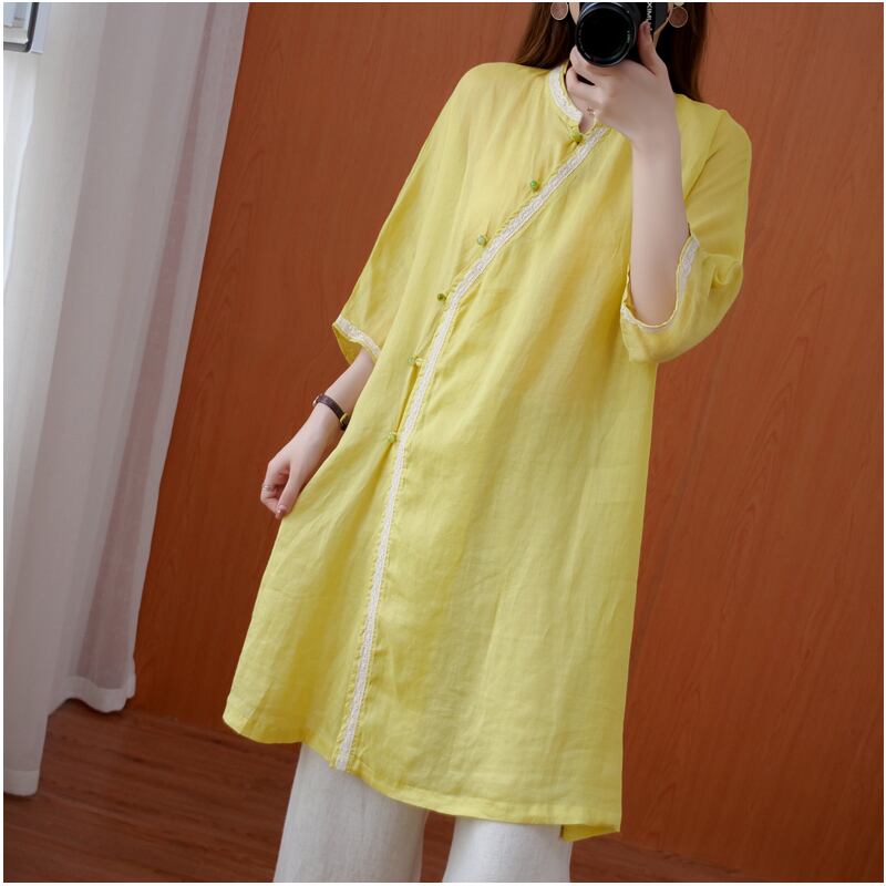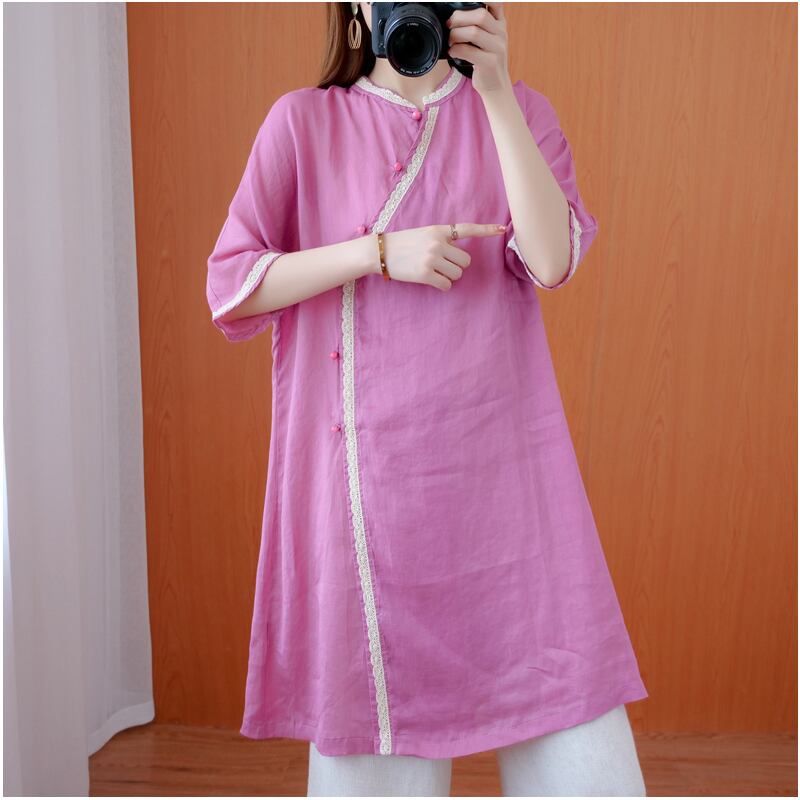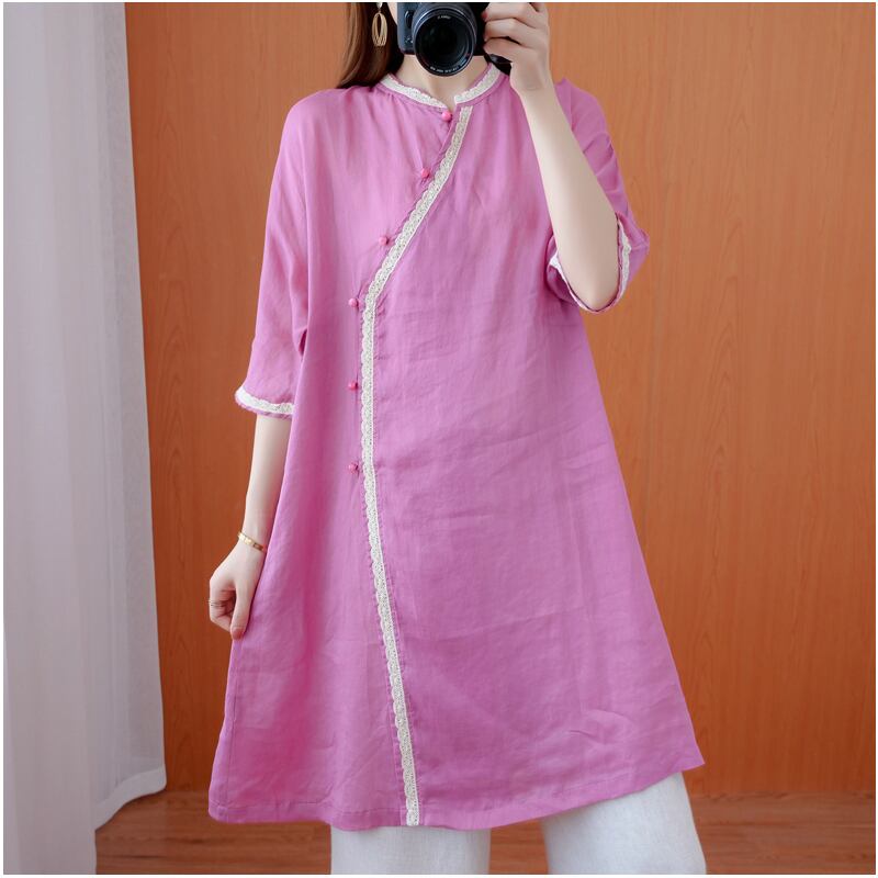 夏のルーズラージサイズレトロチャイナスタイル改良チャイナドレス気質斜めカーディガンドレスティーサービス女性ミドル丈 大きめサイズ サマー 夏物 TB2-8 TB2-882445183134