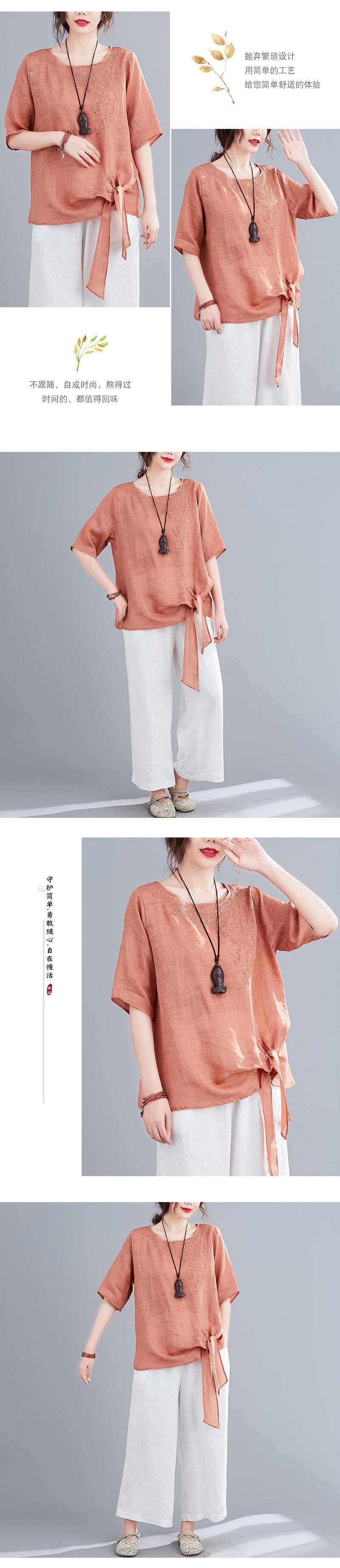 Xiaofeijia〜芸術的なレトロなオールマッチ刺繡ブラウス女性夏脂肪mmルーズエイジ痩身裾ネクタイTシャツ 刺繍 サマー 夏物 TB2-8 TB2-878684785682