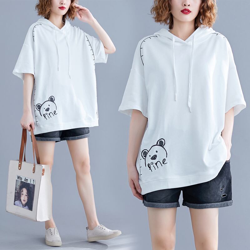 ファットシスター半袖フード付きTシャツレディース2019新しいボトミングシャツルーズウエスタンスタイルの腹を覆うのは薄いプラスサイズのトップ夏でした 大きめサイズ サマー 夏物 TB2-8 TB2-81248356309