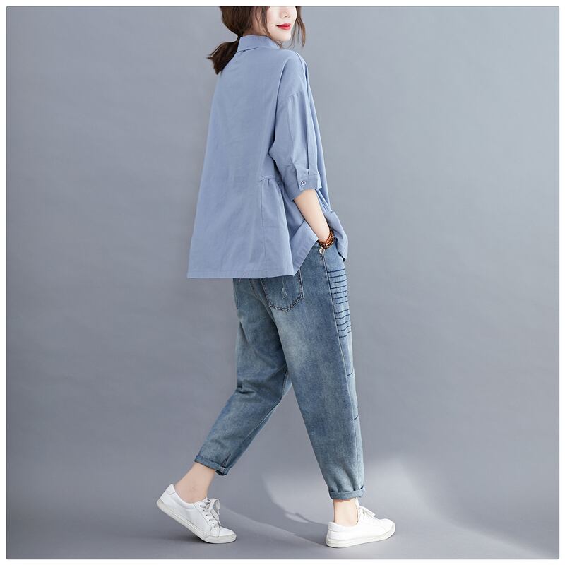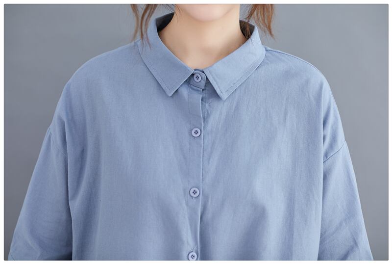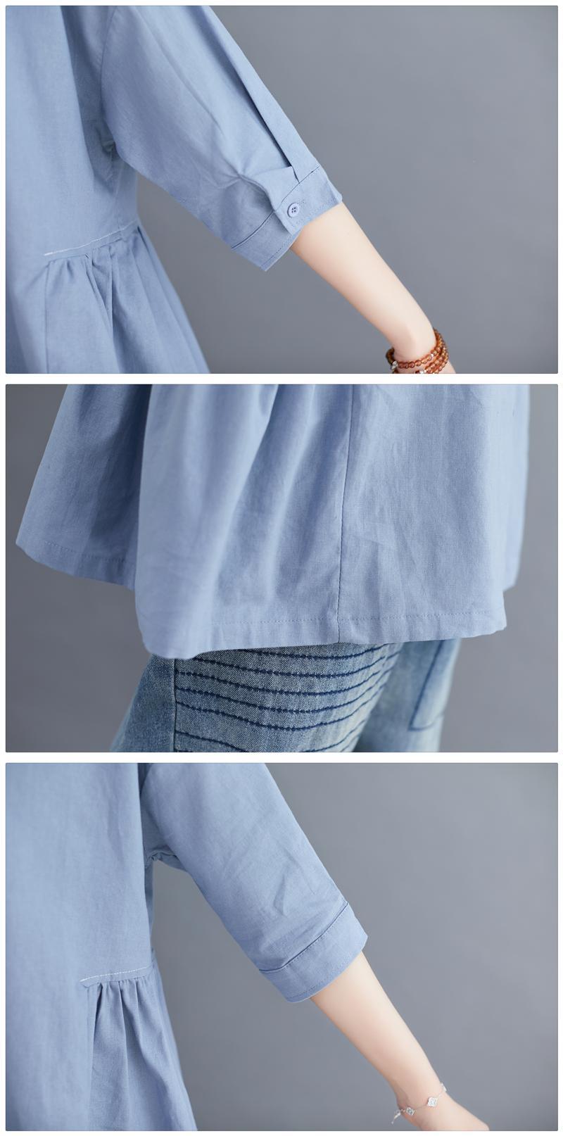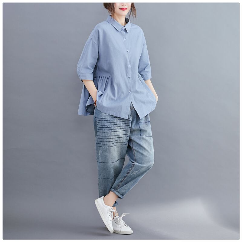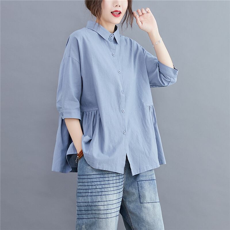 2020年夏新バージョンルーズラージサイズフリル裾無地コットン&リネンシャツレディースオールマッチ年齢制限シャツ 大きめサイズ サマー 夏物 ソリッドカラー TB2-8 TB2-826818835135