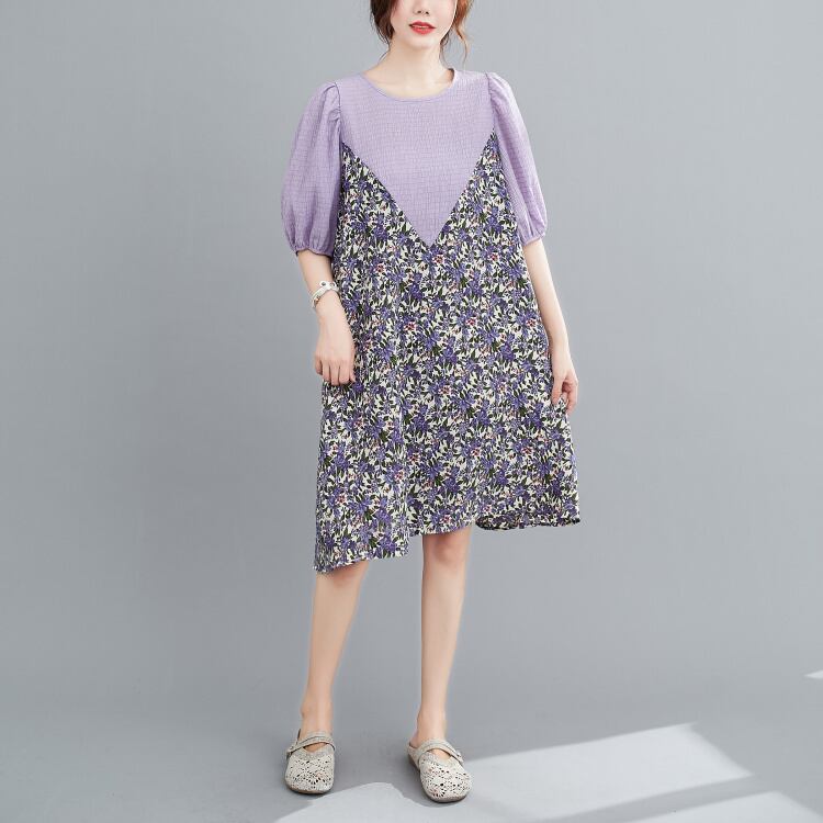 ラージサイズ夏女性ファットmmフェイクツーピースフローラルシフォンドレスフレンチスカートルーズで薄いミドル丈Aラインスカート 大きめサイズ サマー 夏物 花柄 TB2-8 TB2-877726626246