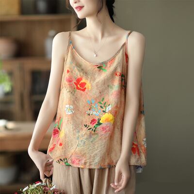 2021年夏のベストサスペンダー女性の薄いセクション、通気性と快適さ、オールマッチのボトミングシャツ、カラーノースリーブプリントトップ女性 サマー 夏物 TB2-45 TB2-4532278417748