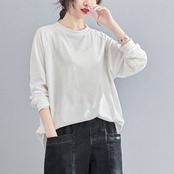 2021年春新バージョンルーズで薄いラージサイズのコンピオンシャツピュアカラーワイルド長袖Tシャツボトミングシャツ女性 ロング 大きめサイズ スプリング 春物 TB2-8 TB2-833643939095