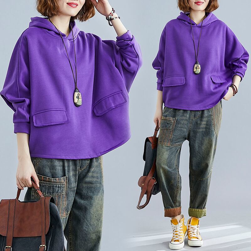 秋と冬のファットmmの学生の200kgプラスサイズのルーズバットスリーブトップオールマッチプラスベルベットの厚いフード付きセーターの女性 大きめサイズ オータム 秋物 ウィンター 冬物 TB2-8 TB2-883486712933