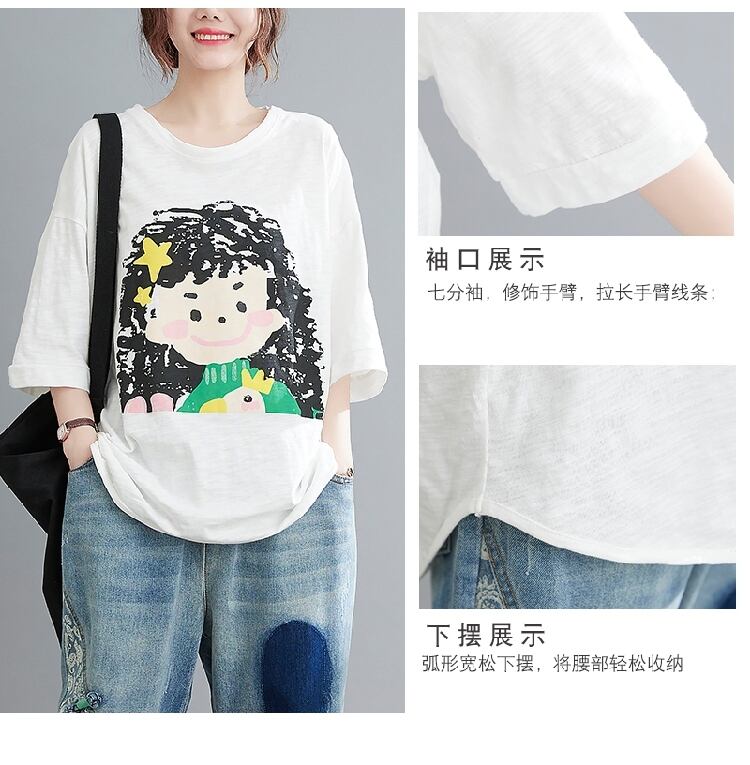 ファットmmシャツは薄くて大きいサイズの潮2021年夏の半袖ボトミングシャツルーズワイルドオールマッチ年齢を減らす漫画のTシャツの女性 大きめサイズ サマー 夏物 TB2-8 TB2-87694570996