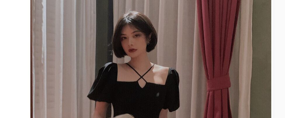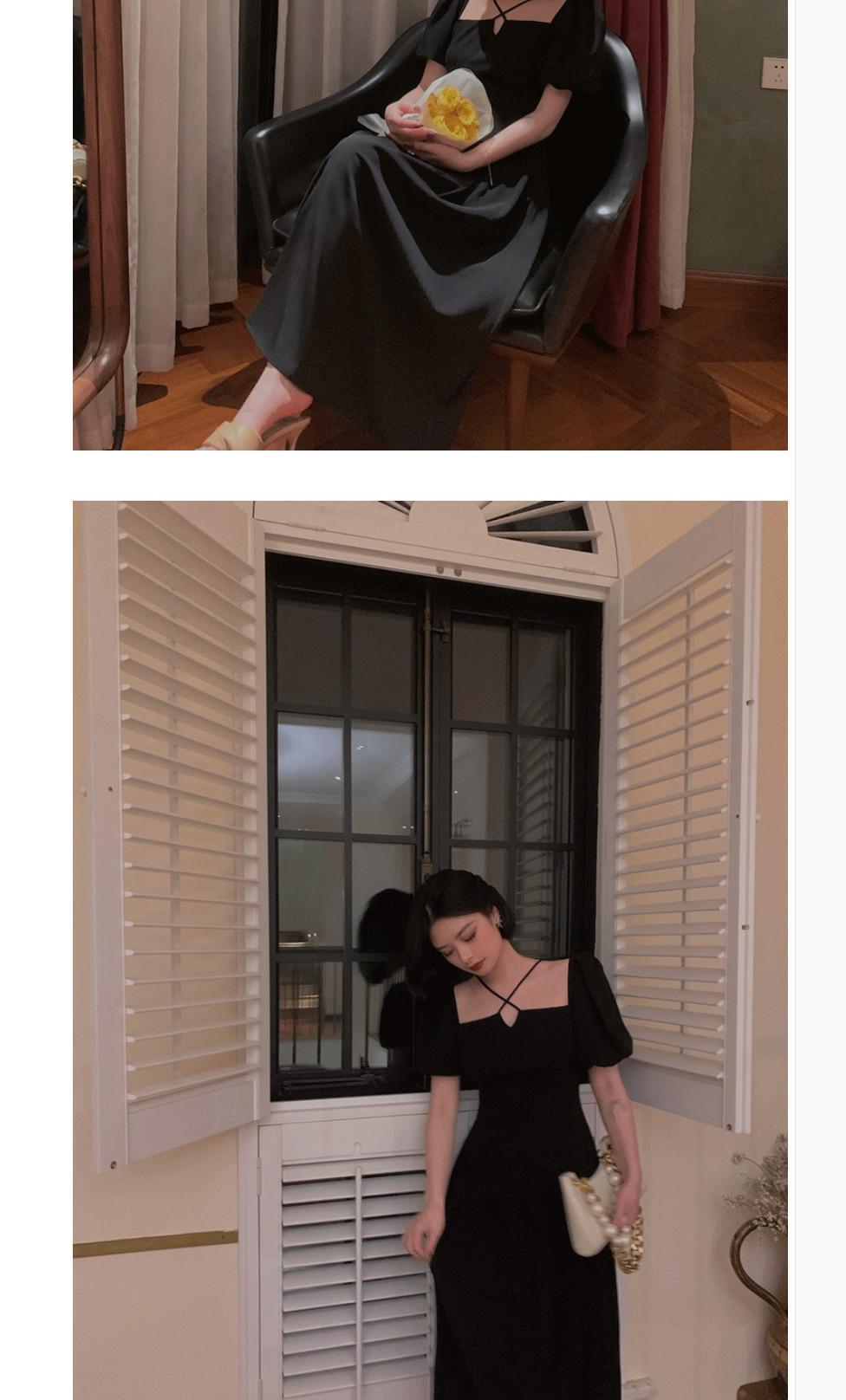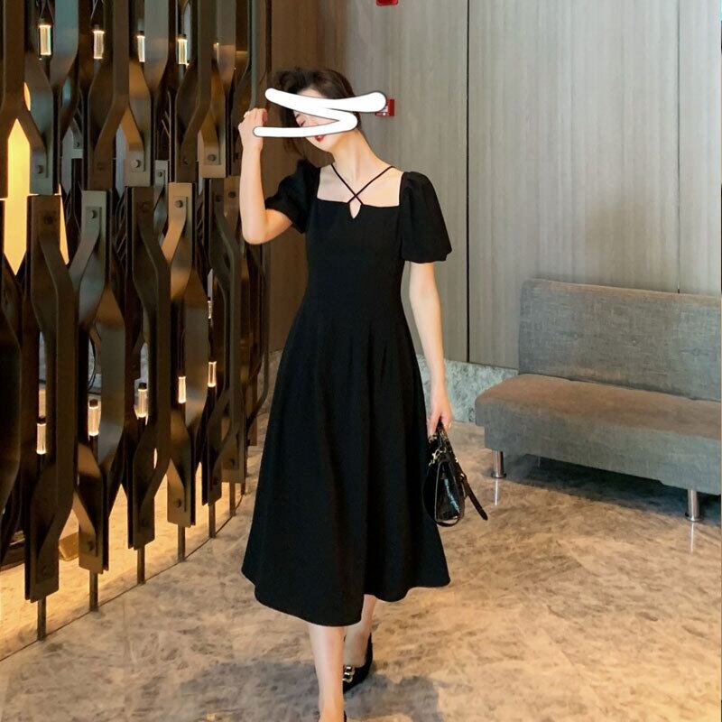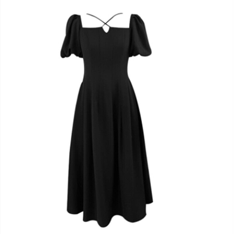 ファットシスタープラスサイズのパフスリーブドレス女性のウエストは細いフレンチレトロロングスカートヘップバーン気質黒スカート ブラック 大きめサイズ TB2-10 TB2-1081828814879