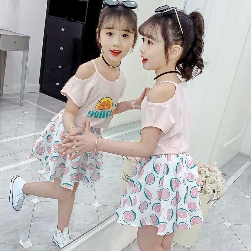 ガールズサマースーツ2021新しい小さな子供用半袖サマービーチスカートツーピーススーツ 夏物 TB2-5 TB2-530762088455
