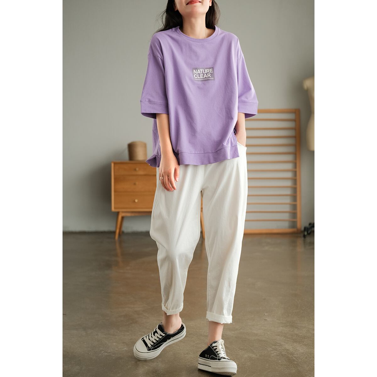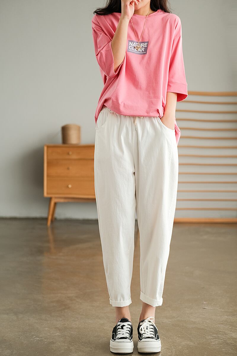 2021年夏バージョンのカジュアルな文学的な薄い女性のズボンの伸縮性のあるウエストは薄い無地のシンプルなハーレムパンツでした エラスティック サマー 夏物 ソリッドカラー TB2-24 TB2-2540300820927