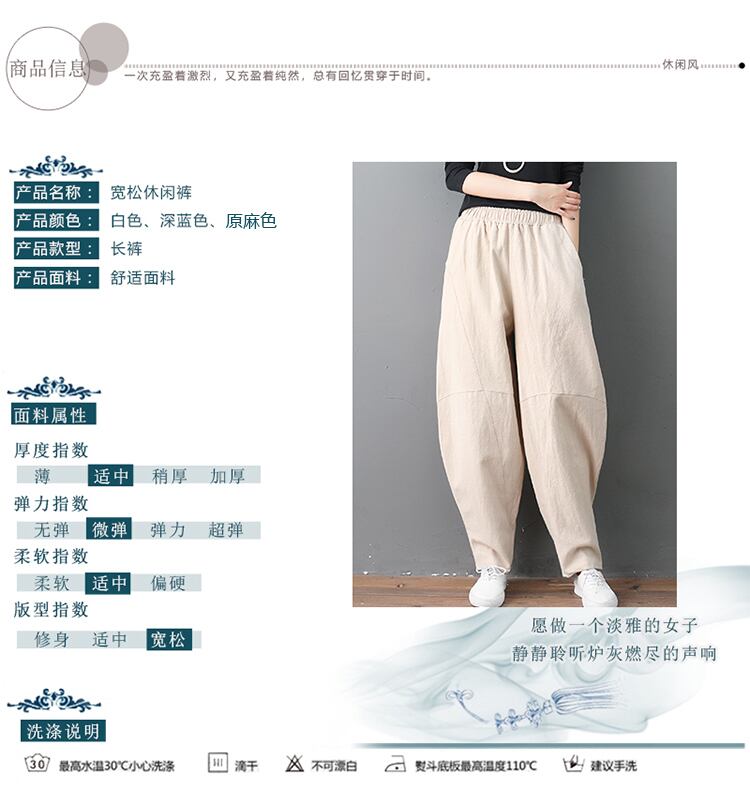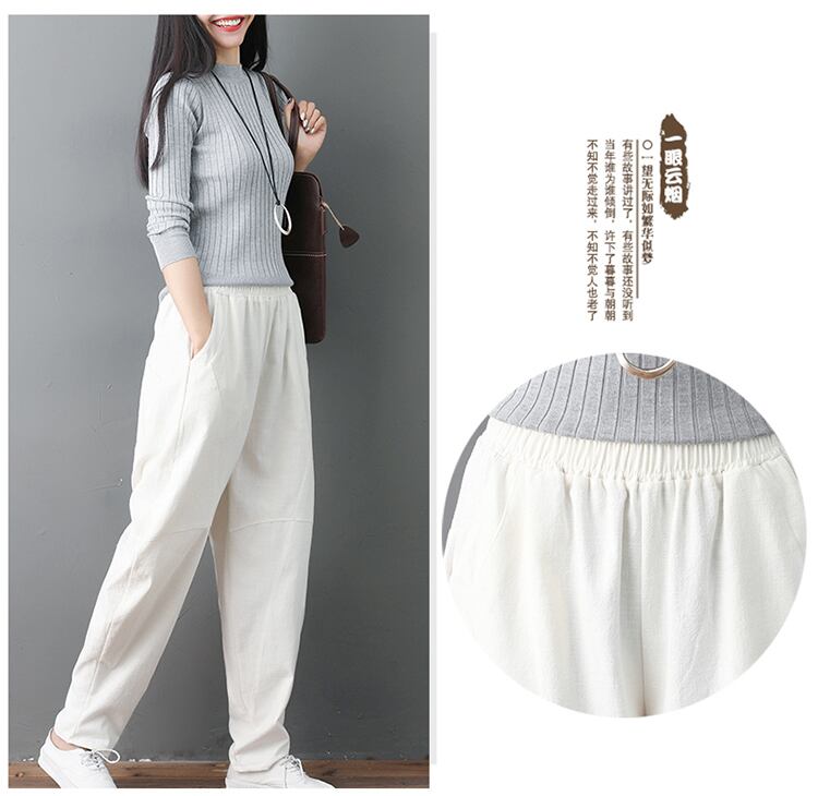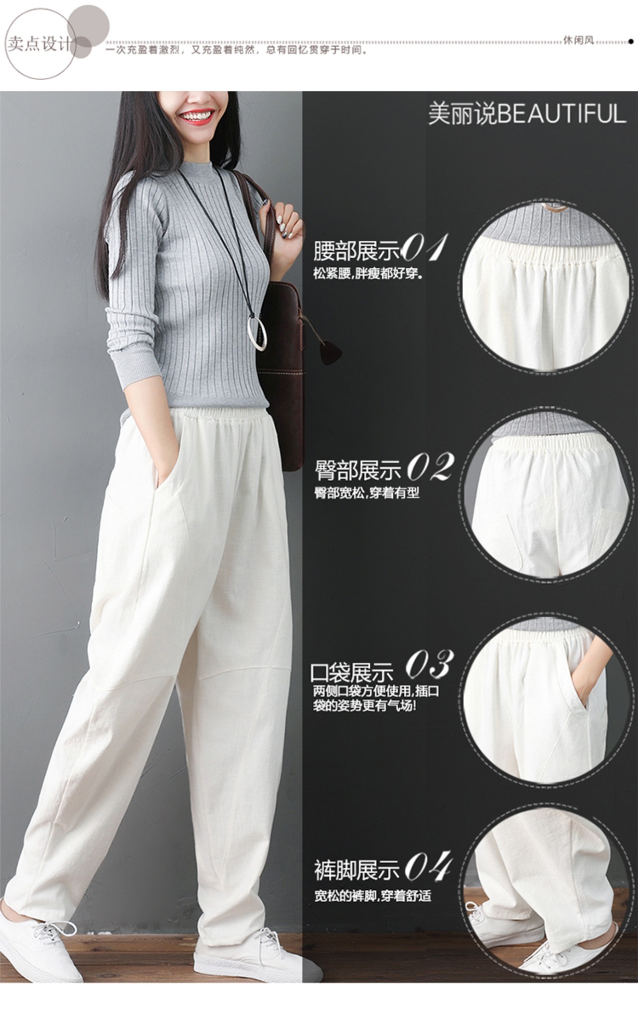 2020年春の新しいルーズラージサイズカジュアルパンツオールマッチ伸縮性ウエストと足ハーレムパンツコットンとリネンのレディースパンツ エラスティック 大きめサイズ スプリング 春物 TB2-8 TB2-868312498992