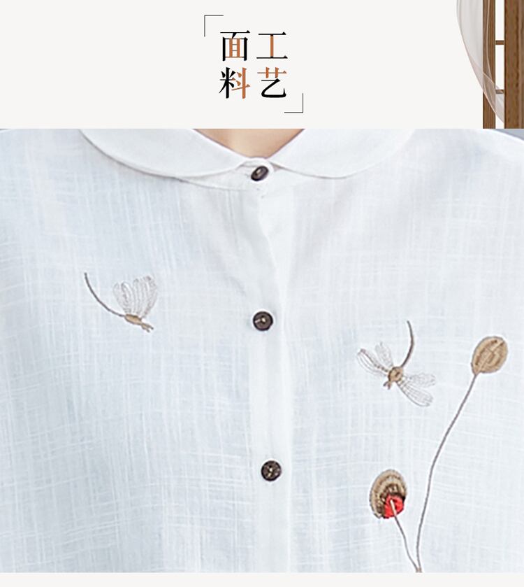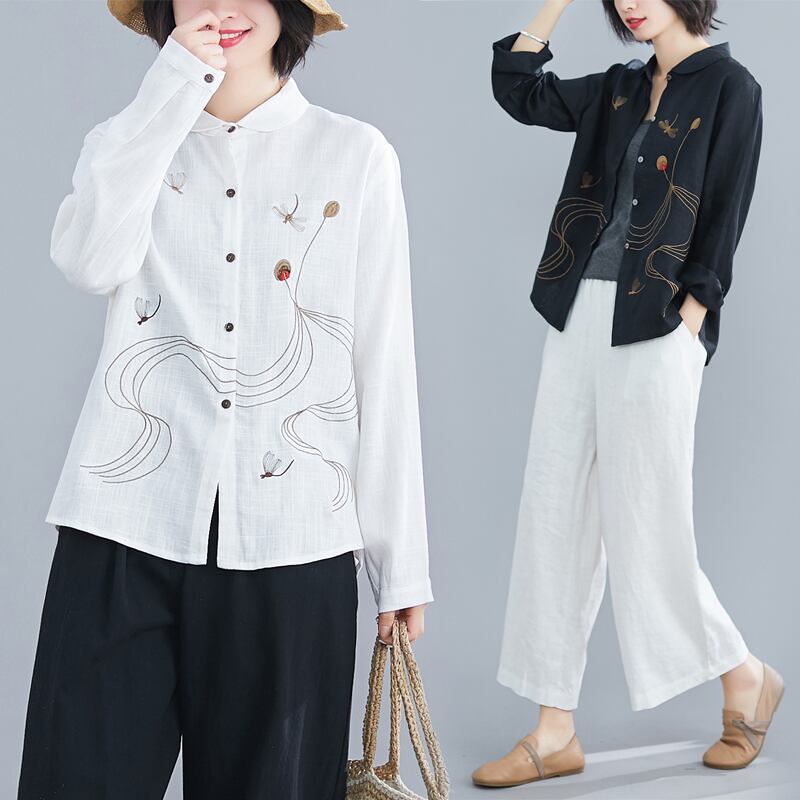 コットンリネンシャツレディース長袖2020年春新作ルーズラージサイズスリム文芸トンボ刺繍入りリネンシャツ ロング レッド 大きめサイズ スプリング 春物 TB2-8 TB2-830718626726