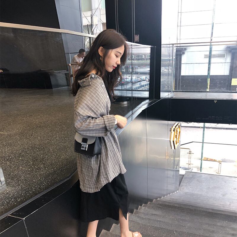 大きいサイズのルーズザンミートスーツスカート、太った姉妹は薄かった、年齢削減サスペンダードレス、長袖気質シャツツーピーススーツ ロング 大きめサイズ TB2-10 TB2-1069553698196