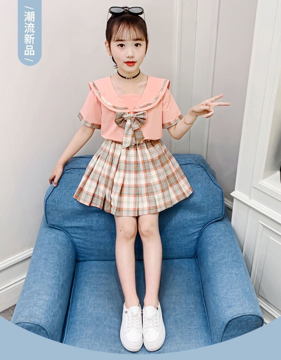 ガールズスーツサマードレス2021ニューエインスタイルネットレッドJKユニムカレッジスタイルキッズスカートツーピーストレンド 夏物 TB2-5 TB2-571669969188