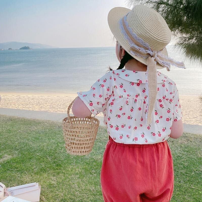 女の子の新しい洋風ショーツスーツ2021ネット赤女性赤ちゃん夏花柄シャツ小さな花柄スーツ レッド サマー 夏物 ブルマー TB2-5 TB2-576481078760