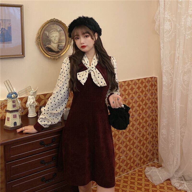レトロウエスト気質フェイクツーピースボトミングスカート年齢削減コーデュロイドレスラージサイズザンミートショートスカートファットシスター 大きめサイズ TB2-10 TB2-1040958093218