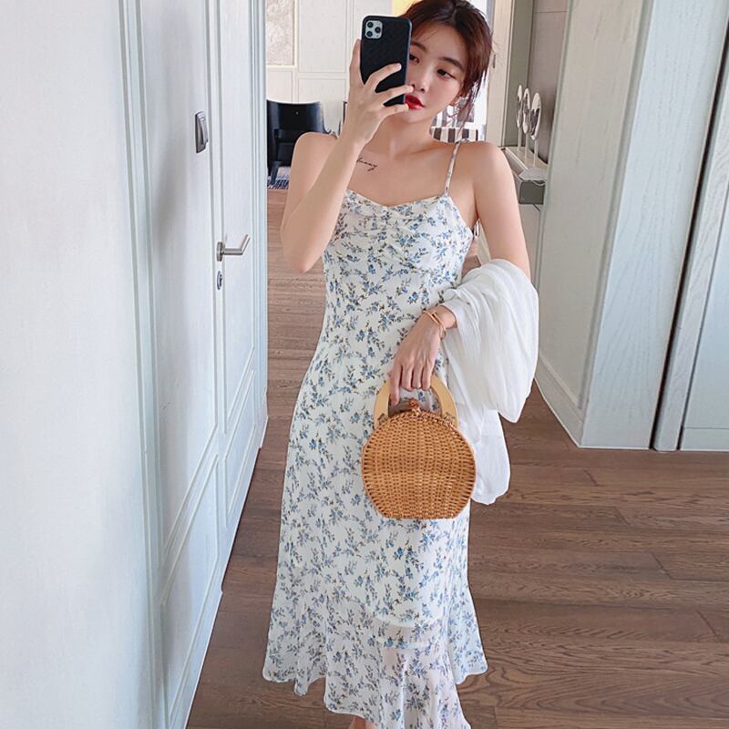 ラージサイズ夏セクシースリングシフォンドレスフレンチロングスカート夏スーパーフェアリー気質フローラルスカートファットシスター 大きめサイズ サマー 夏物 花柄 TB2-10 TB2-1085154390180