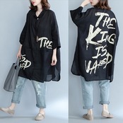 ラージサイズの女性の2019年夏の新しいレタープリントシャツロングカーディガン薄いリネン通気性ジャケット日焼け止めシャツ 大きめサイズ サマー 夏物 TB2-8 TB2-899941378183