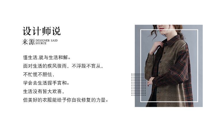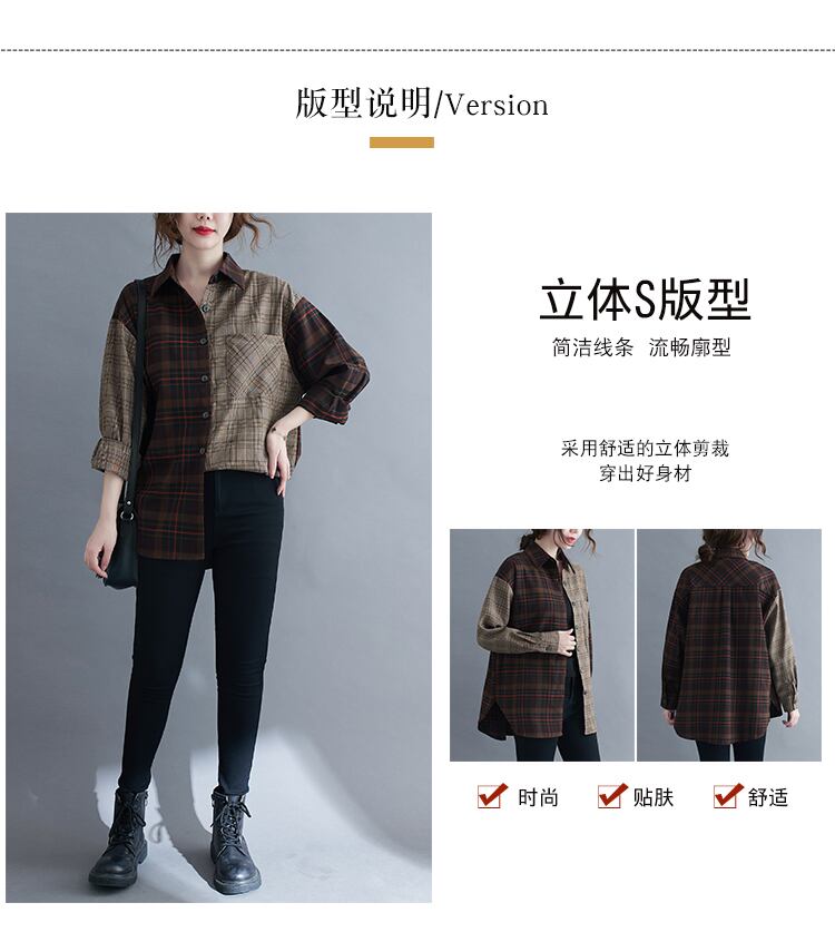 プラスサイズの春の女性の2021年の新しい綿とリネンのステッチチェック柄の文学的なシャツのデザインのニッチな感覚の長袖シャツ ロング コットン 大きめサイズ スプリング 春物 TB2-8 TB2-895110579907