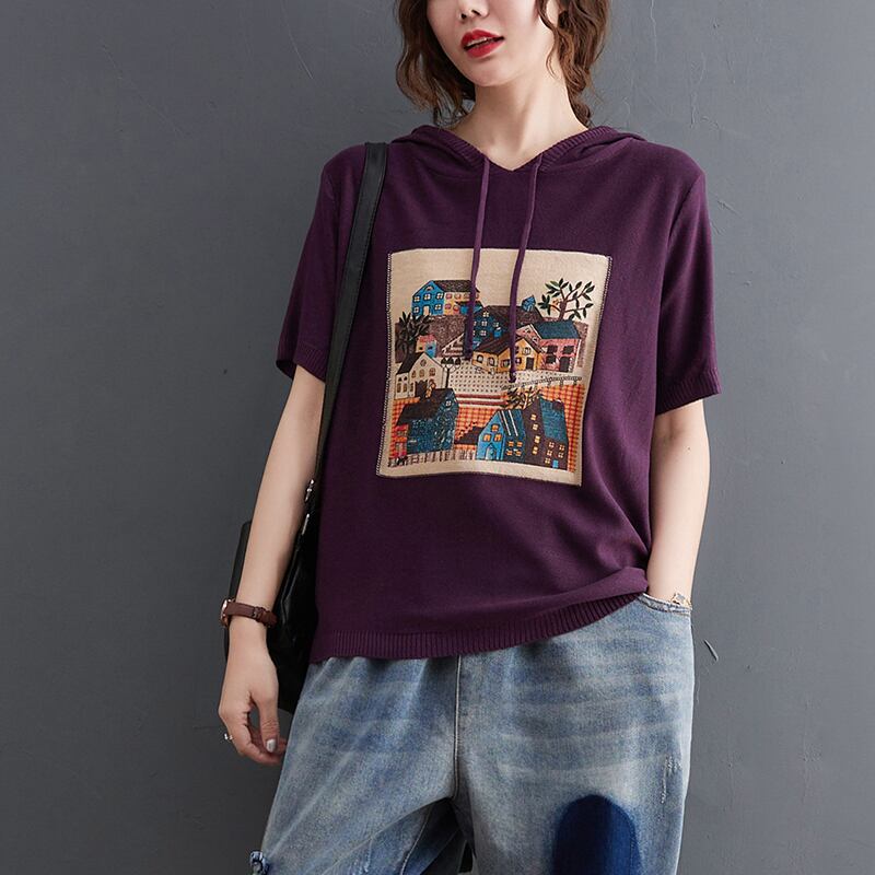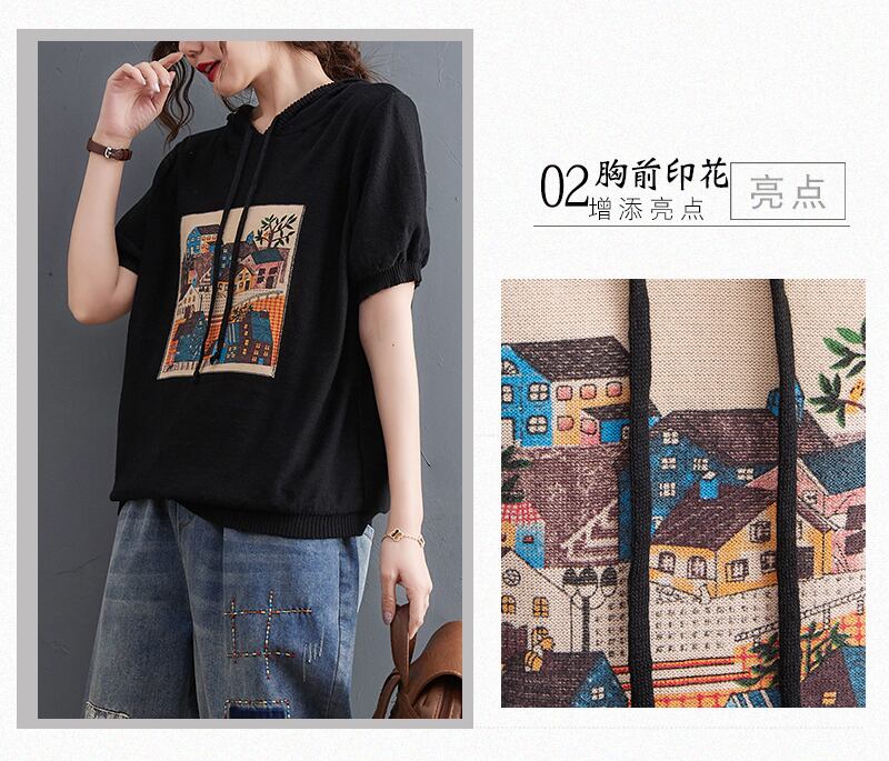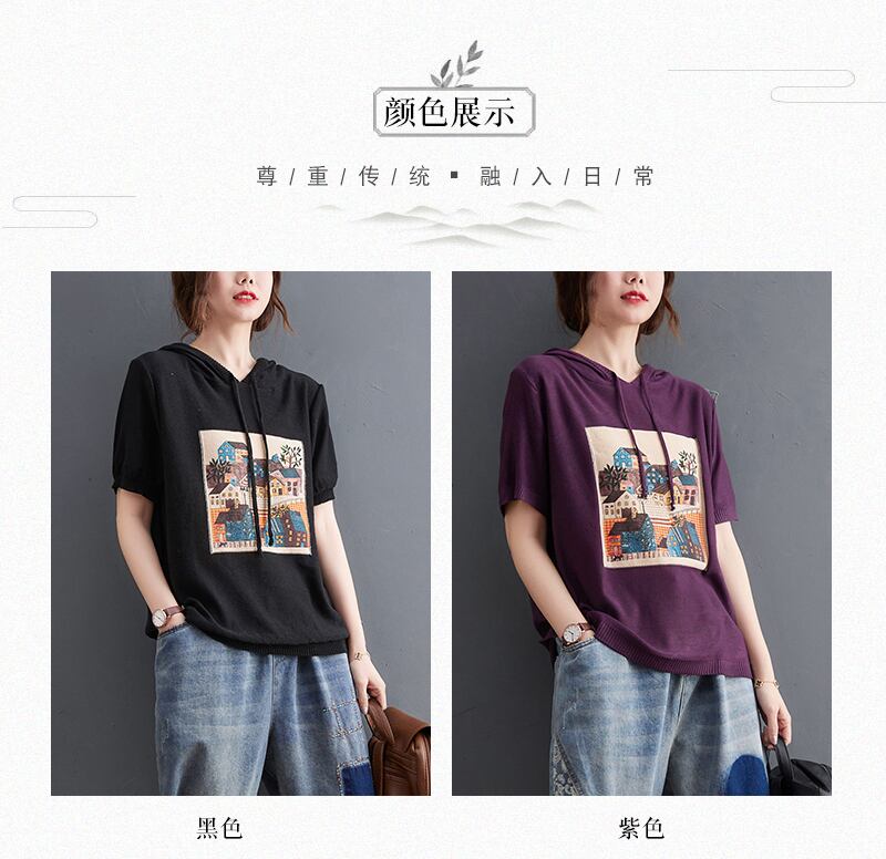 プラスサイズの女性の夏の新しいルーズで薄いプルオーバーセーターフード付きカジュアルオールマッチトップ半袖Tシャツトレンド ショート ハーフスリーブ 大きめサイズ サマー 夏物 TB2-8 TB2-840308410275