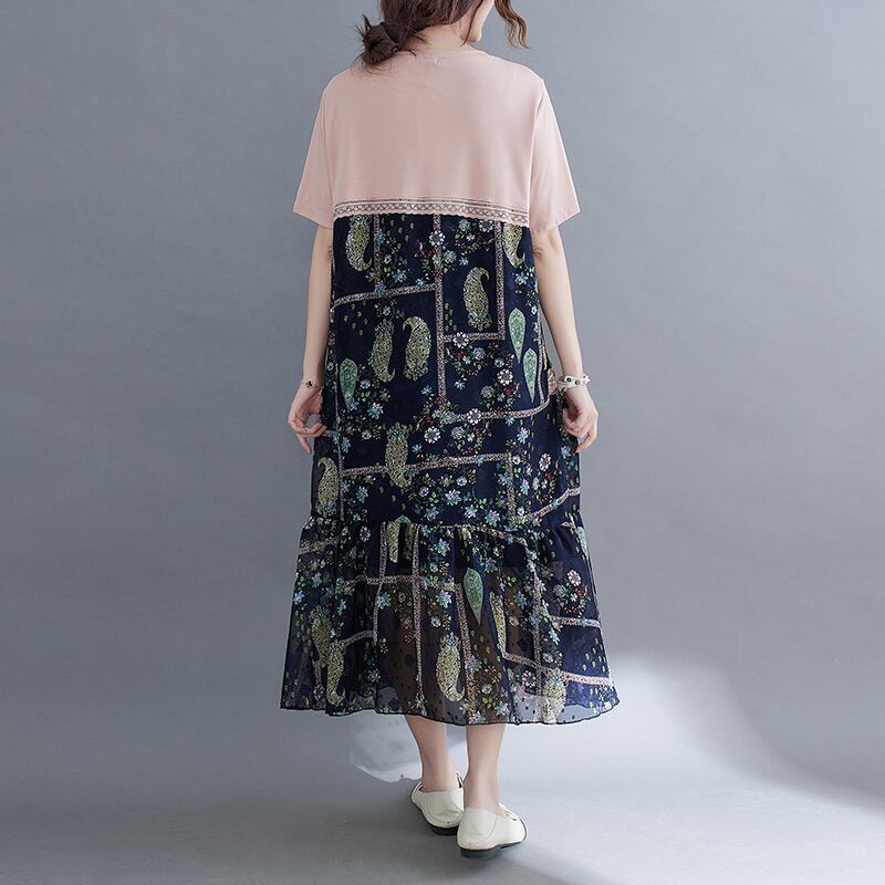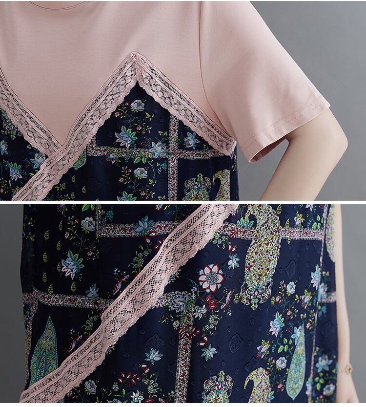 2021年夏の新しいプラスサイズの女性の太いmmスカートTシャツスカート花のステッチ偽の薄いドレスの女性の2つの部分 大きめサイズ サマー 夏物 花柄 TB2-8 TB2-831351790975
