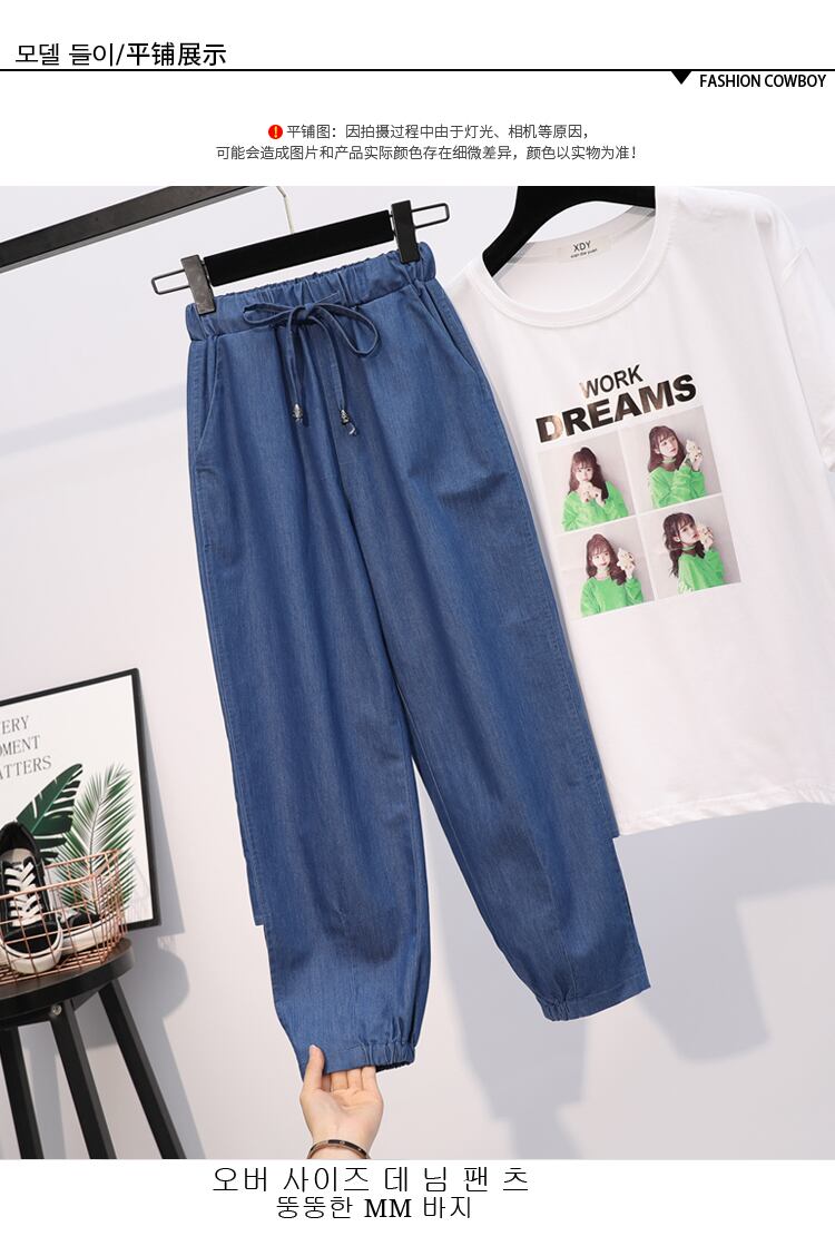 2021年夏のラージサイズアイスシルクデニムハーレムパンツレディースルーズファットMMシンウエストアンクルパンツトレンディ 大きめサイズ サマー 夏物 TB2-8 TB2-856285770525