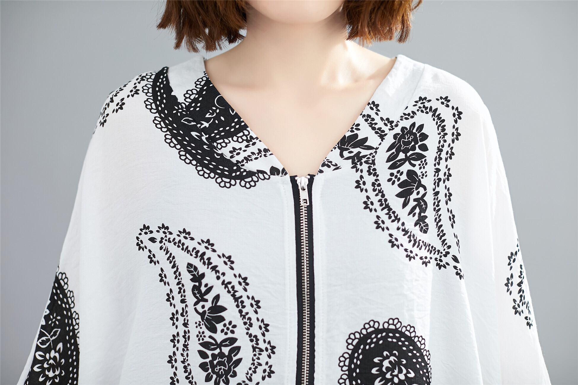 2021年春夏新作トレードプラスサイズルーズプリントウインドブレーカーレディースミドル丈バットスリーブジッパー日焼け止め 大きめサイズ スプリング 春物 サマー 夏物 TB2-59 TB2-594089367076