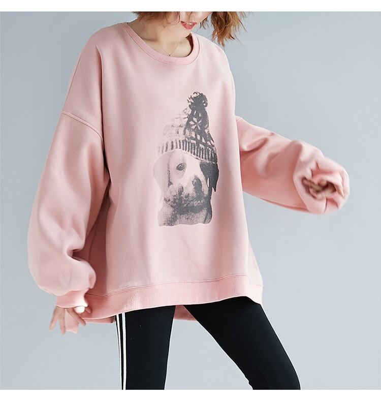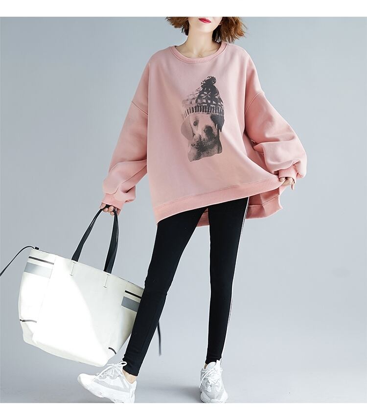 2020年秋冬新作トレードラージサイズランタンスリーブプラスベルベットラウンドネックセーター長袖怠惰な風ルーズ厚手のコート ロング 大きめサイズ オータム 秋物 ウィンター 冬物 Oネック TB2-59 TB2-591250787749