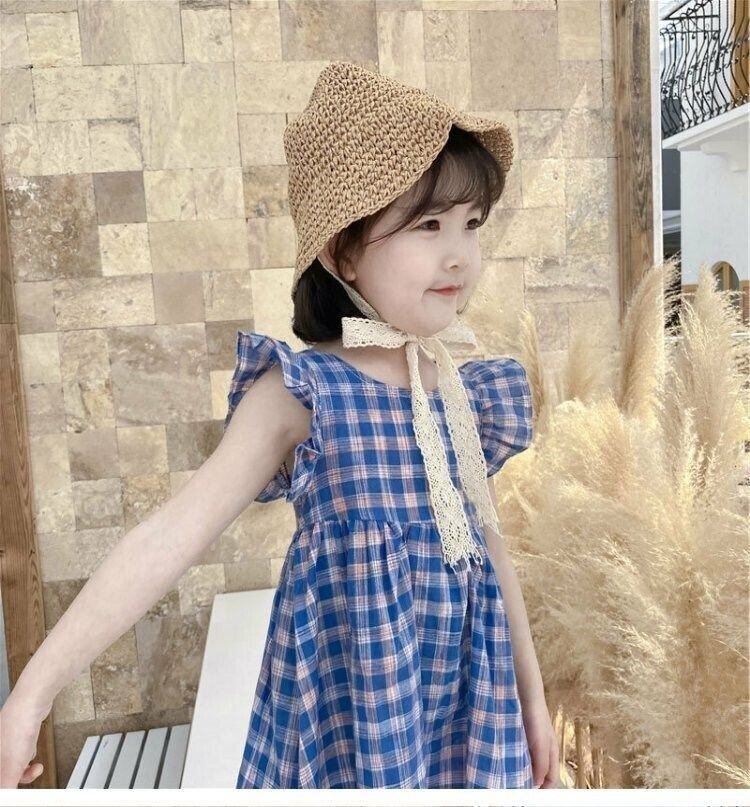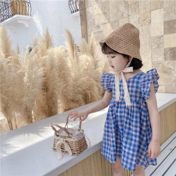 夏の綿とリネンのドレス2021新しい中小の子供格子縞のスカート赤ちゃんXiaofei袖の短いスカート ショート コットン サマー 夏物 TB2-5 TB2-521123660734