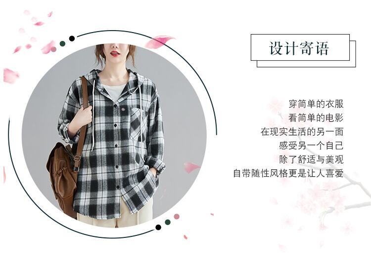 ラージサイズファットMMシャツ春レトロ起毛チェック柄シャツレディース長袖ワイルドルーズカジュアルフード付きジャケットタイド ロング 大きめサイズ スプリング 春物 TB2-8 TB2-863026678528