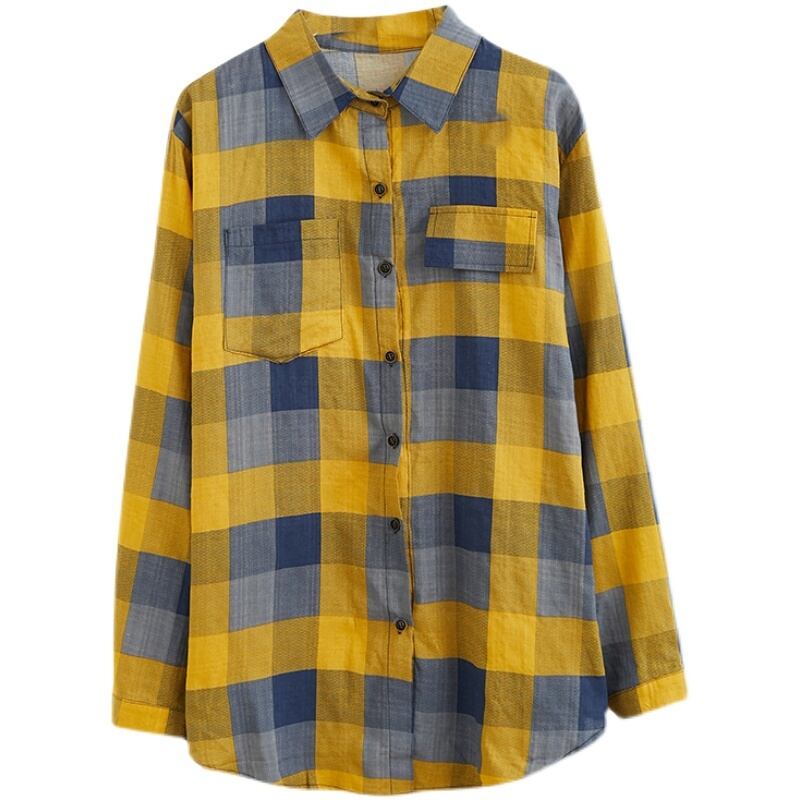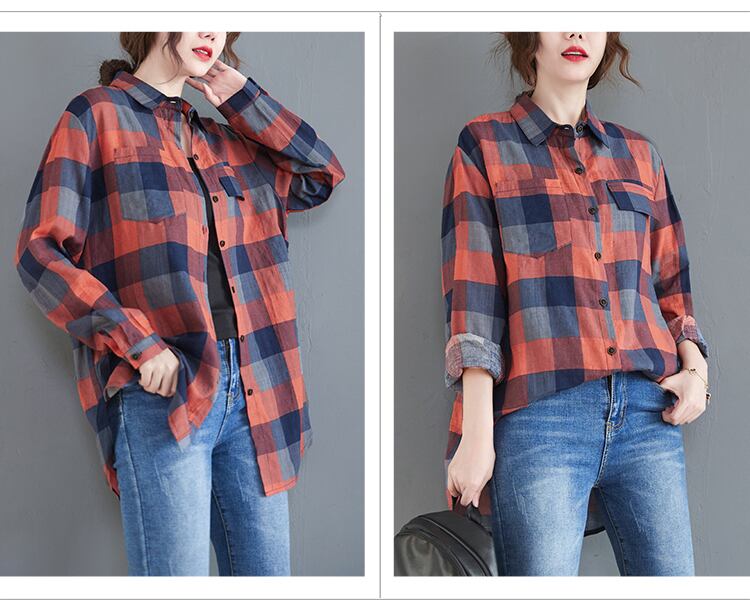 チェック柄シャツレディース長袖春秋服文芸脂肪mmラージサイズカバー肉スリミングシャツルーズカジュアル年齢を減らすトップ ロング 大きめサイズ スプリング 春物 オータム 秋物 TB2-8 TB2-839521700424