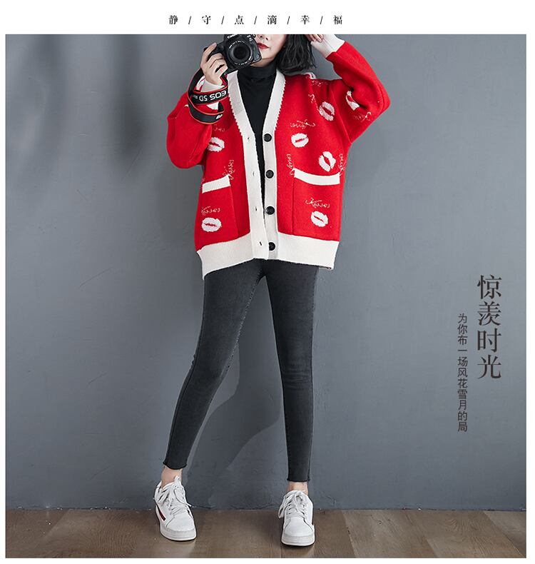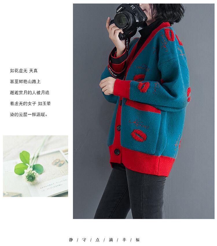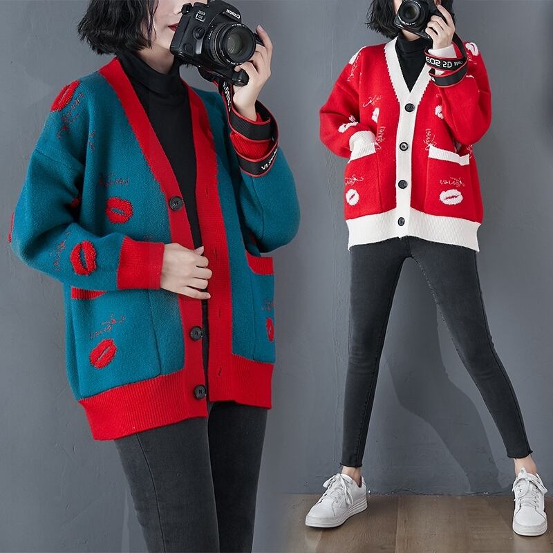 2020年初秋、ファットMMルーズラージサイズ婦人服コントラストカラーVネックウエスタンスタイルニットセータージャケットカーディガンを着用 大きめサイズ オータム 秋物 TB2-53 TB2-5394086667671