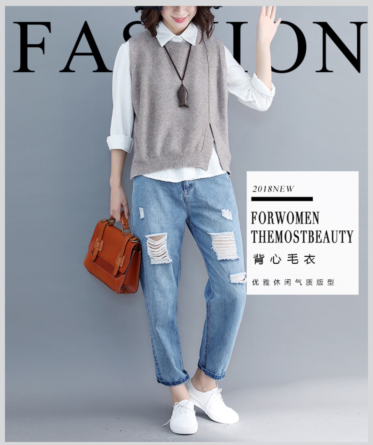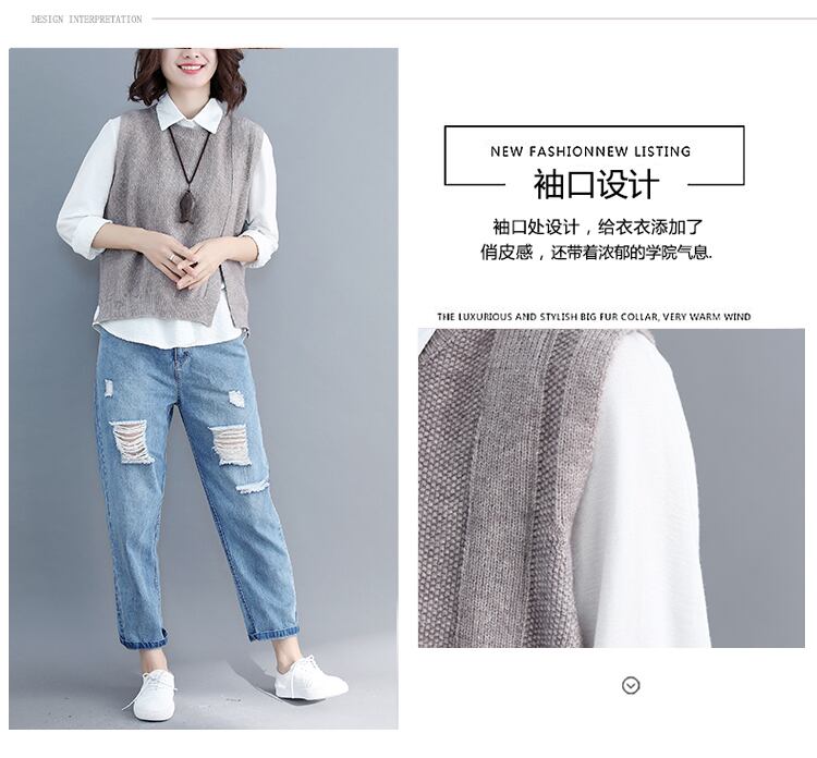 ファットmm秋の服新時代痩身無地プルオーバーベストセータールーズラウンドネックショートチョッキプラスサイズ婦人服 大きめサイズ オータム 秋物 Oネック ソリッドカラー TB2-53 TB2-5364425025793