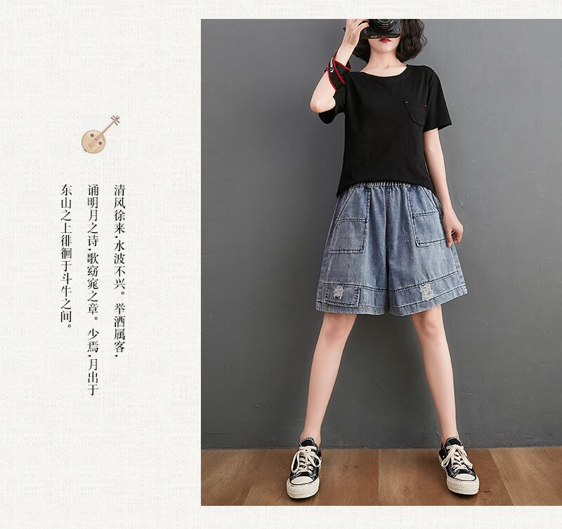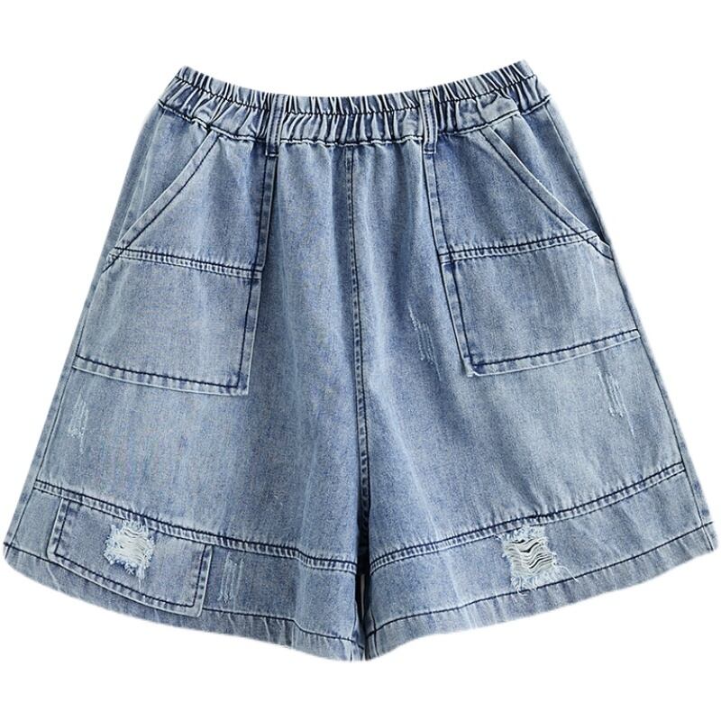 デニムAライン5点パンツサマールーズファットmmバージョンのホールステッチは薄手プラスサイズのレディースカジュアルワイドレッグショーツ 大きめサイズ 夏物 ブルマー TB2-50 TB2-5058877255572