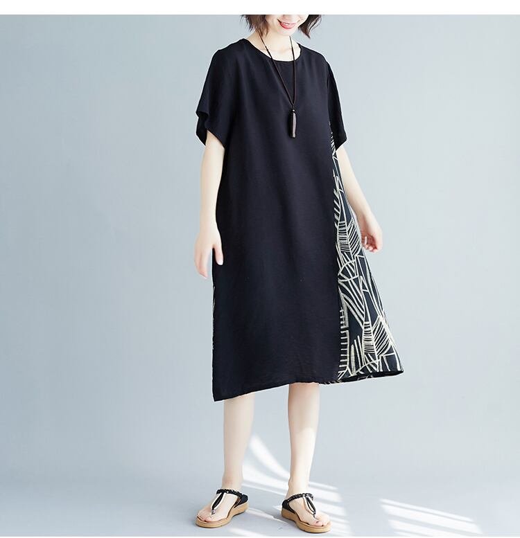 薄くて太ったマザープラスファットプラスサイズルーズ気質ファットmmロングセクションチベットの肉夏半袖コットンとリネンのドレス 大きめサイズ サマー 夏物 TB2-36 TB2-3639648413273