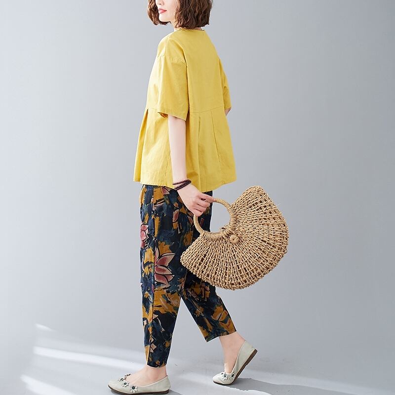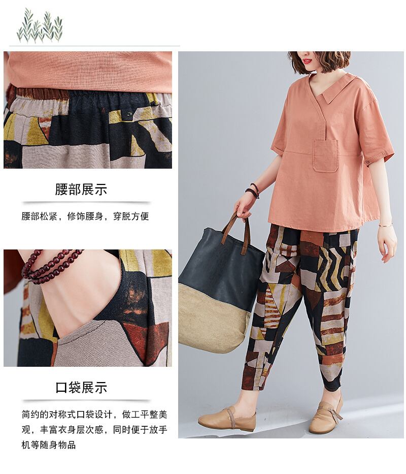2020年夏の薄手のカバーミートコットンとリネンのツーピーススーツファットMMプラスサイズの女性用ルーズ半袖シャツ+パンツ 大きめサイズ サマー 夏物 TB2-53 TB2-5369971468275