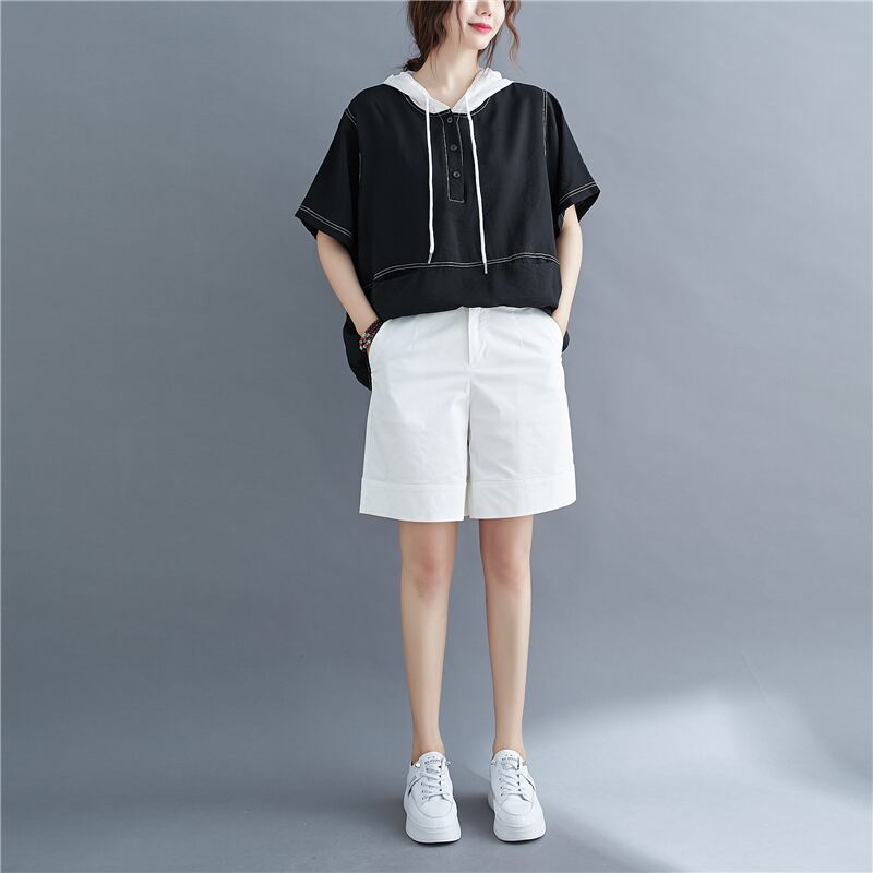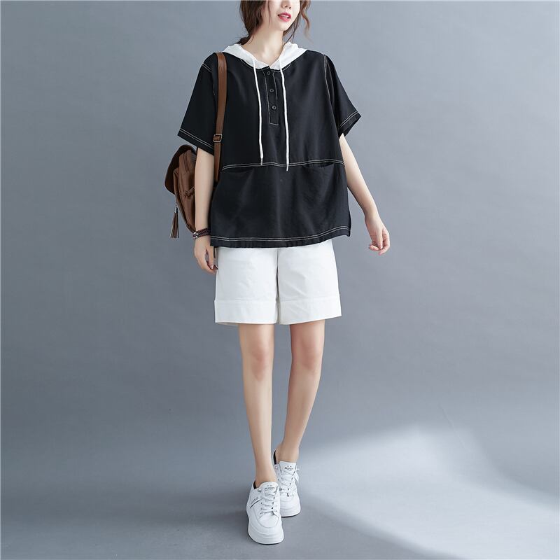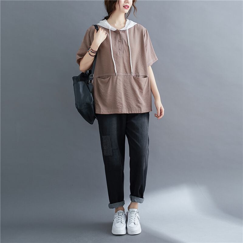 2021年夏の新しいスタイルのeignトレードプラスサイズのオープンラインダブルポケットTシャツ女性巾着フード付きブレストベリーカバートップ 大きめサイズ サマー 夏物 TB2-59 TB2-5938634011867