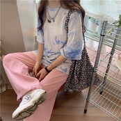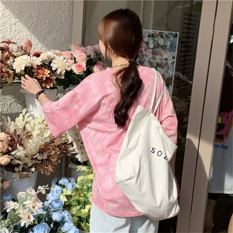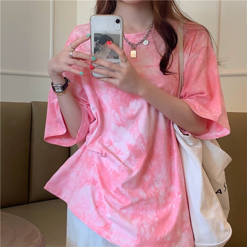 絞り染めのコットン半袖Tシャツ女性の2021年夏の新しいスタイルのカバー腹大サイズルーズで怠惰な風ミドル丈半袖トップ 大きめサイズ サマー 夏物 TM2-3 TM2-314707524672