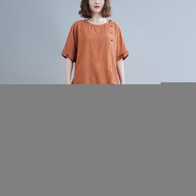 太った女性がお腹を覆い、スリミングスーツの大きいサイズの不規則なTシャツ+レトロな市松模様のハーレムパンツ女性の夏の新しい2021年 レッド 大きめサイズ サマー 夏物 TB2-21 TB2-214447719806