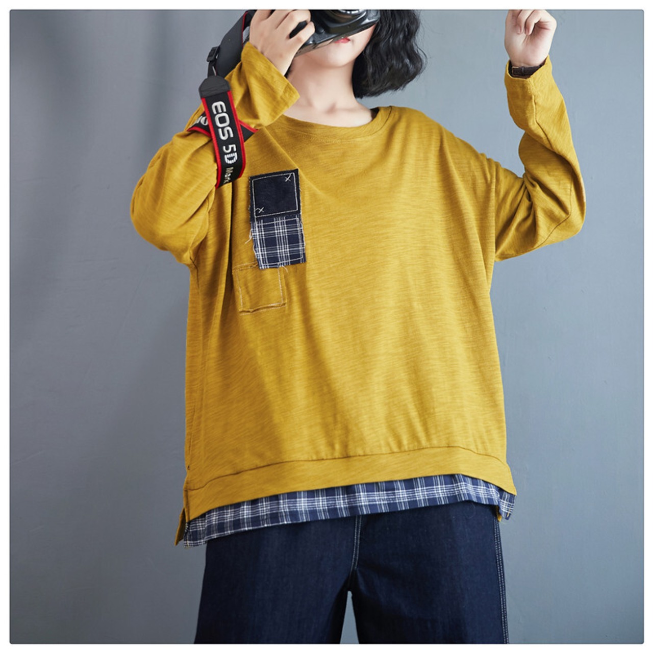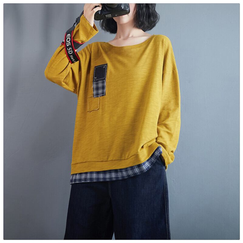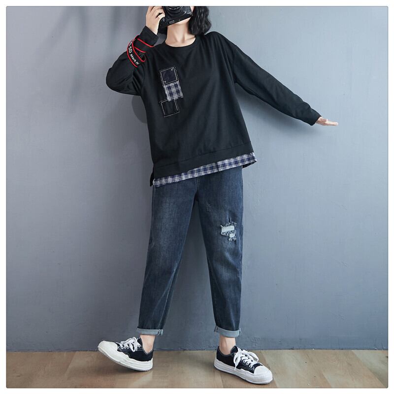 2021年春のベースステッチファッションスリムでルーズなプラスサイズのファットMMアートTシャツブラウス長袖トップス ロング 大きめサイズ スプリング 春物 TB2-12 TB2-1236207317477