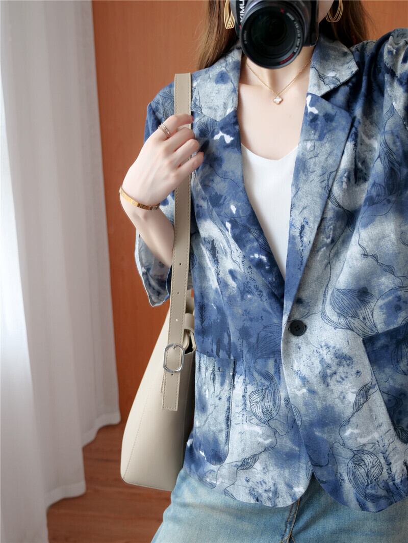 レトロプリントラージサイズレディース薄手のコートレディースルーズエイジリダクション多目的7点スリーブスーツレディースサマードレス2021新品 大きめサイズ 夏物 TB2-12 TB2-1213288313310
