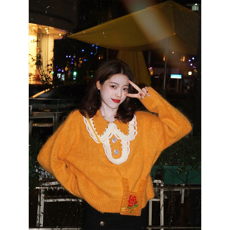ソルトシリーズ怠惰な穏やかな風重工業人形の襟黄色のセーター女性ルーズソフトワックスラペルセーターレトロ香港フレーバー TB2-52 TB2-5271592487094